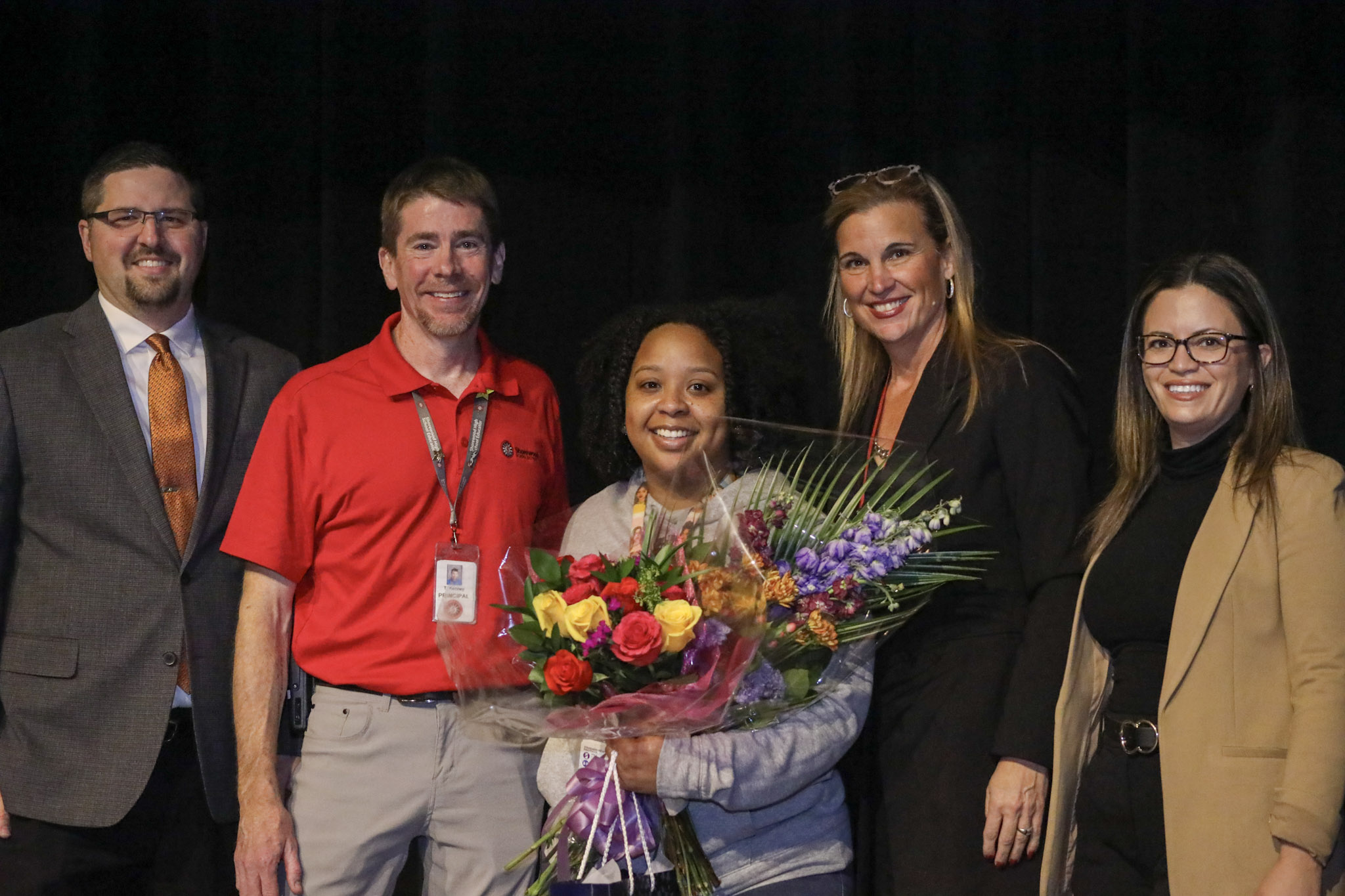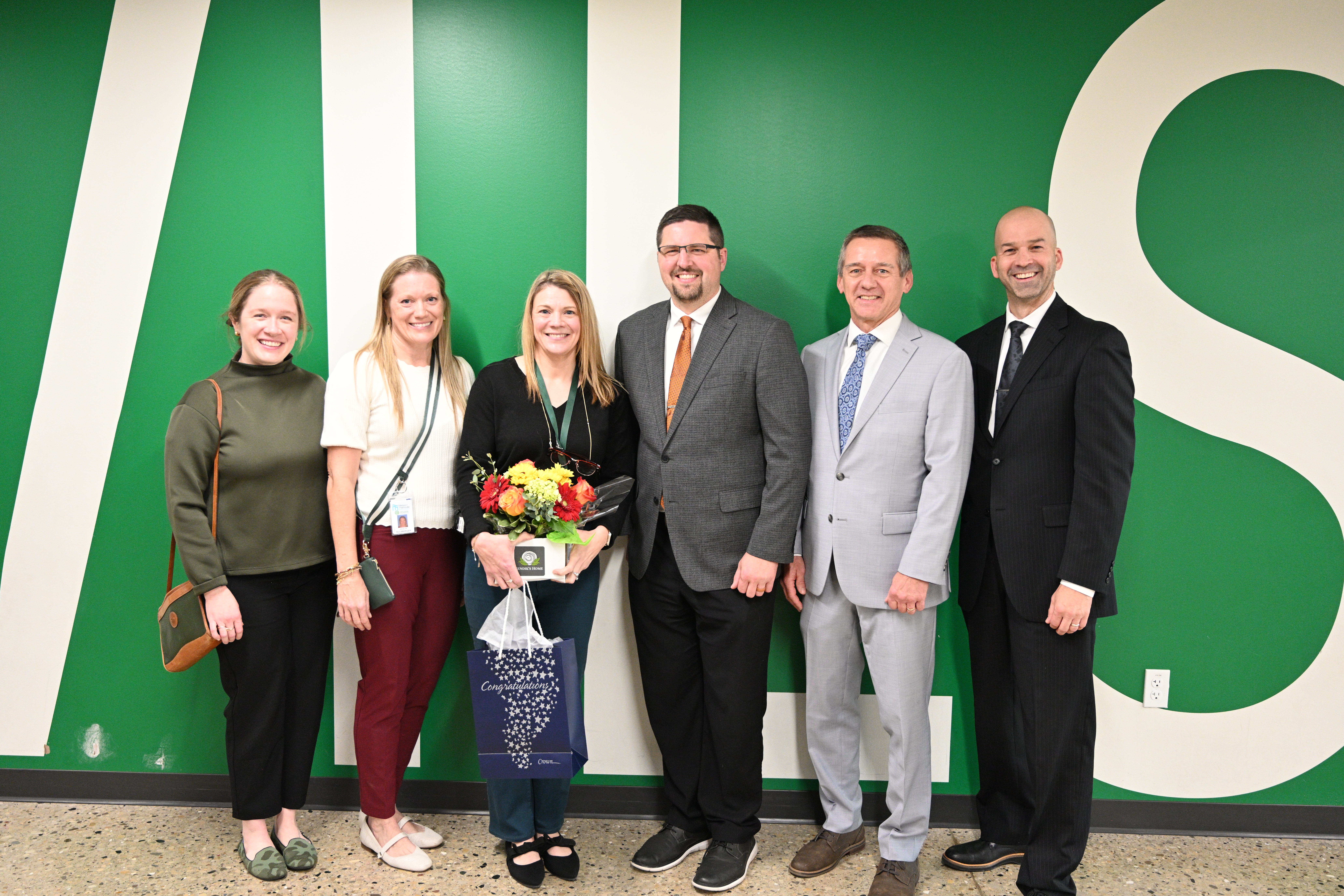 Left to Right: Stuart Russ, AWSA Board President, Ryan Vogler, Principal, Holmen Middle School, Tashner, who serves as associate principal and activities director at Holmen Middle School, has been dedicated to building a school culture where every student and staff member feels seen, supported, and valued. Over his four years as associate principal, he has helped lead a collaborative, student-centered environment rooted in the school’s mission: “Belong. Serve. Succeed.” “Ben Tashner’s leadership reflects the best of Wisconsin’s middle school associate principals,” said AWSA Executive Director Jim Lynch. “His work at Holmen Middle School demonstrates a deep commitment to belonging, collaboration, and continuous improvement. He leads with compassion and clarity, creating a culture where students and staff thrive together.” At Holmen Middle School, Tashner has strengthened systems that promote student safety, wellbeing, and growth. He is known for being a visible, approachable presence in hallways, classrooms, and lunchrooms, where he builds authentic connections and models the importance of respect and collaboration. A former special education teacher, Tashner draws on his classroom experience to lead with empathy and equity. He has developed collaborative intervention systems that ensure students receive timely, individualized academic and behavioral support. Through data-driven decision making and strong relationships with staff and families, he has helped improve attendance, engagement, and overall school climate. “Ben is a dedicated leader committed to collaborating with staff to ensure they have the resources and support they need to help students grow and learn,” said HMS Principal Ryan Vogler. “He works tirelessly to develop opportunities for students to get involved and create a culture where all students feel like they belong. HMS is lucky to have him on our staff.” Tashner holds a master’s degree in professional development and a bachelor’s degree, both from the University of Wisconsin–La Crosse. “We are absolutely thrilled that Mr. Tashner has been named the Wisconsin Middle School Associate Principal of the Year,” said School District of Holmen District Administrator Dr. Kristin Mueller. “This honor is a testament to the incredible energy he brings every day, creating a vibrant, engaging, and inclusive educational community. He is a master connector building strong bridges with our students, families, and community members, ensuring that everyone feels they truly belong. His exceptional leadership drives our mission forward and empowers all to succeed. We are proud of him and this statewide honor.” Amanda Jamerson Named Wisconsin High School Associate Principal of the YearThe Association of Wisconsin School Administrators has recognized Amanda Jamerson as its 2026 Wisconsin High School Associate Principal of the Year. The announcement was made during a surprise ceremony at her school on Friday, November 14th.